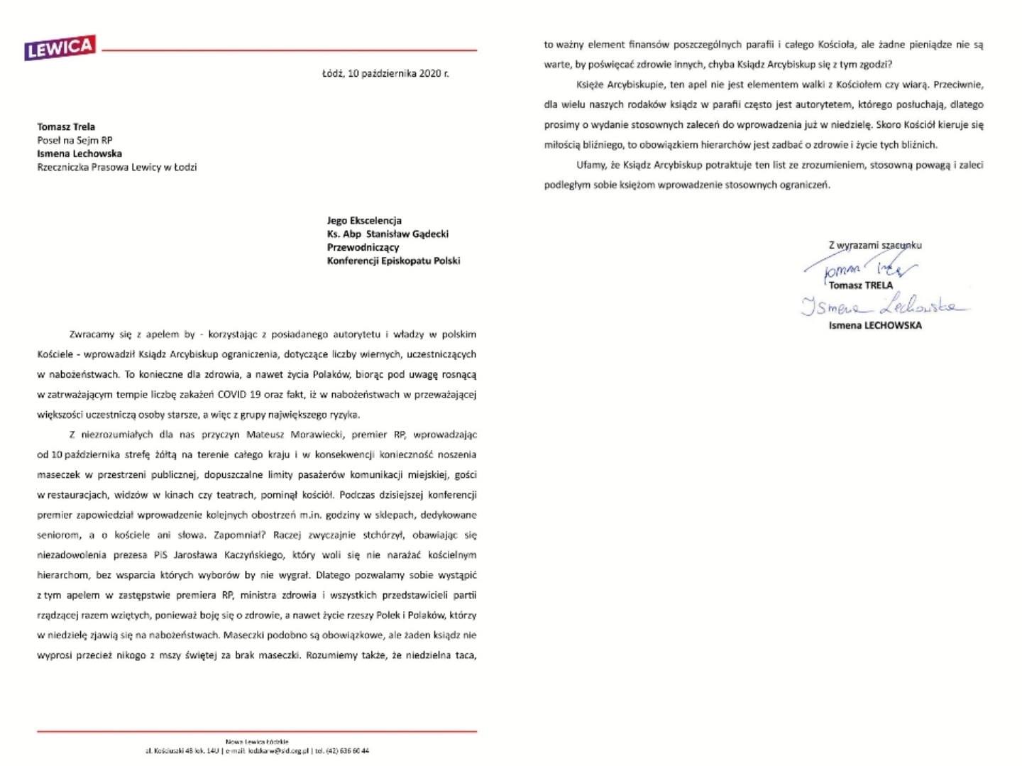 – Ekscelencjo, proszę natychmiast ogłosić i wprowadzić obostrzenia w Kościele. Restauracja, siłownia, pływalnia, kościół – każdy inny, wszyscy równi! – apelował Trela do przewodniczącego Konferencji Episkopatu Polski Abp Stanisława Gądeckiego.
