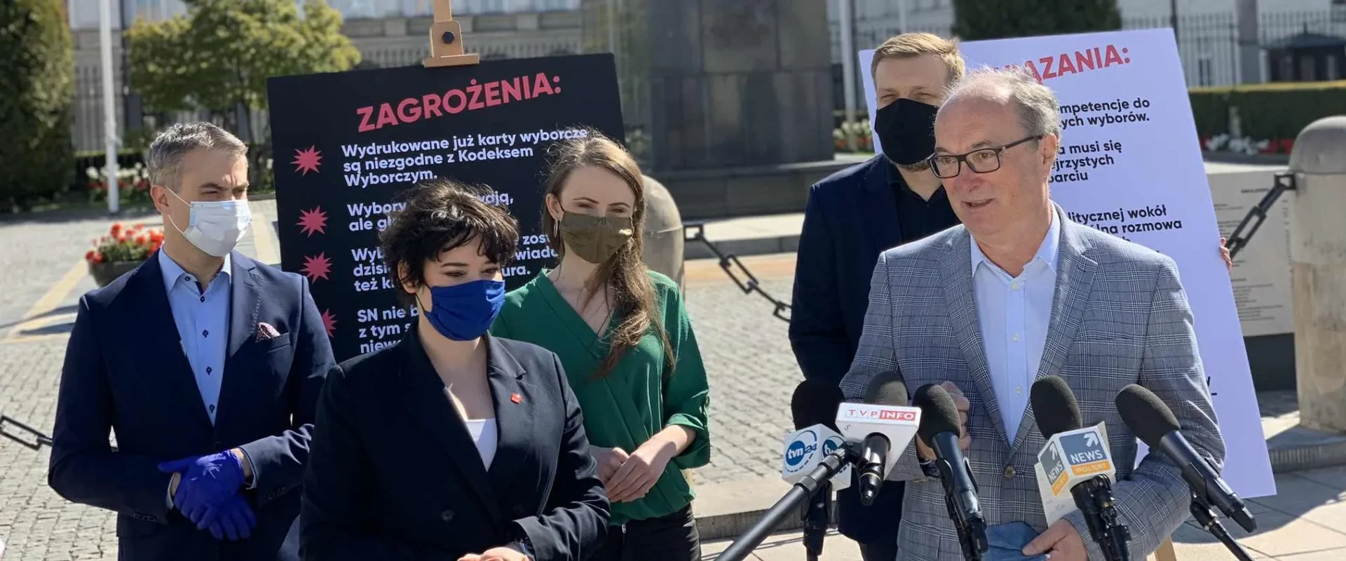Usiądźmy i transparentnie pogadajmy o wyborach. Nie pod stołem, nie za funkcje, nie za stanowisko Marszałka Sejmu, nie za zwiększenie swojej pozycji w PiS-ie, ale z myślą o obywatelkach i obywatelach. Wczoraj cała Polska została wkręcona w kolejny odcinek serialu pt. „Co PiS pod stołem zrobi?”. Wczoraj nie rozmawialiśmy o ludziach bez pracy, bez pieniędzy; o dzieciach, które za chwilę pójdą do przedszkoli bez zabezpieczenia; o przedsiębiorcach, którzy wychodzą na ulicę – rozmawialiśmy o czym Jarek z Jarkiem pogadał. Mamy tego dość. Nawiasem mówiąc, gdzie jest prezydent? Czy prezydent widzi, że Polska jest źle rządzona? Czy prezydent widzi, że nie ma nic do powiedzenia w naszym kraju? Czy prezydent mógłby zrozumieć na czym polega istota bycia głową państwa? Ona polega na tym, że ma się swoje zdanie i poglądy, że potrafi się nazwać zło złem, a dobro dobrem. Czy prezydent zareagował na to, że 5-7 łebków usiadło i znów manipulowało terminem wyborów? Panie prezydencie, jest godzina 9.30 niech Pan wstanie i idzie na wybory, niech Pan głosuje. Dlaczego Pan nie idzie głosować? Nie ma wyborów?