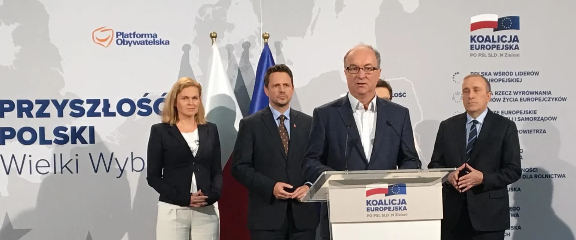 Pragnę zwrócić się do wyborców lewicy. Lewica jest tu, w Koalicji Europejskiej. Wyborcom Sojuszu Lewicy Demokratycznej chcę powiedzieć: jesteśmy gwarantami w tej koalicji wszystkich spraw socjalnych, państwa świeckiego, mówienia prawdy o historii, przywrócenia tego, co ludziom aktywnym zawodowo do 1989 r. zostało zabrane, aby ich prawa nabyte zostały zwrócone. Gwarantujemy to!