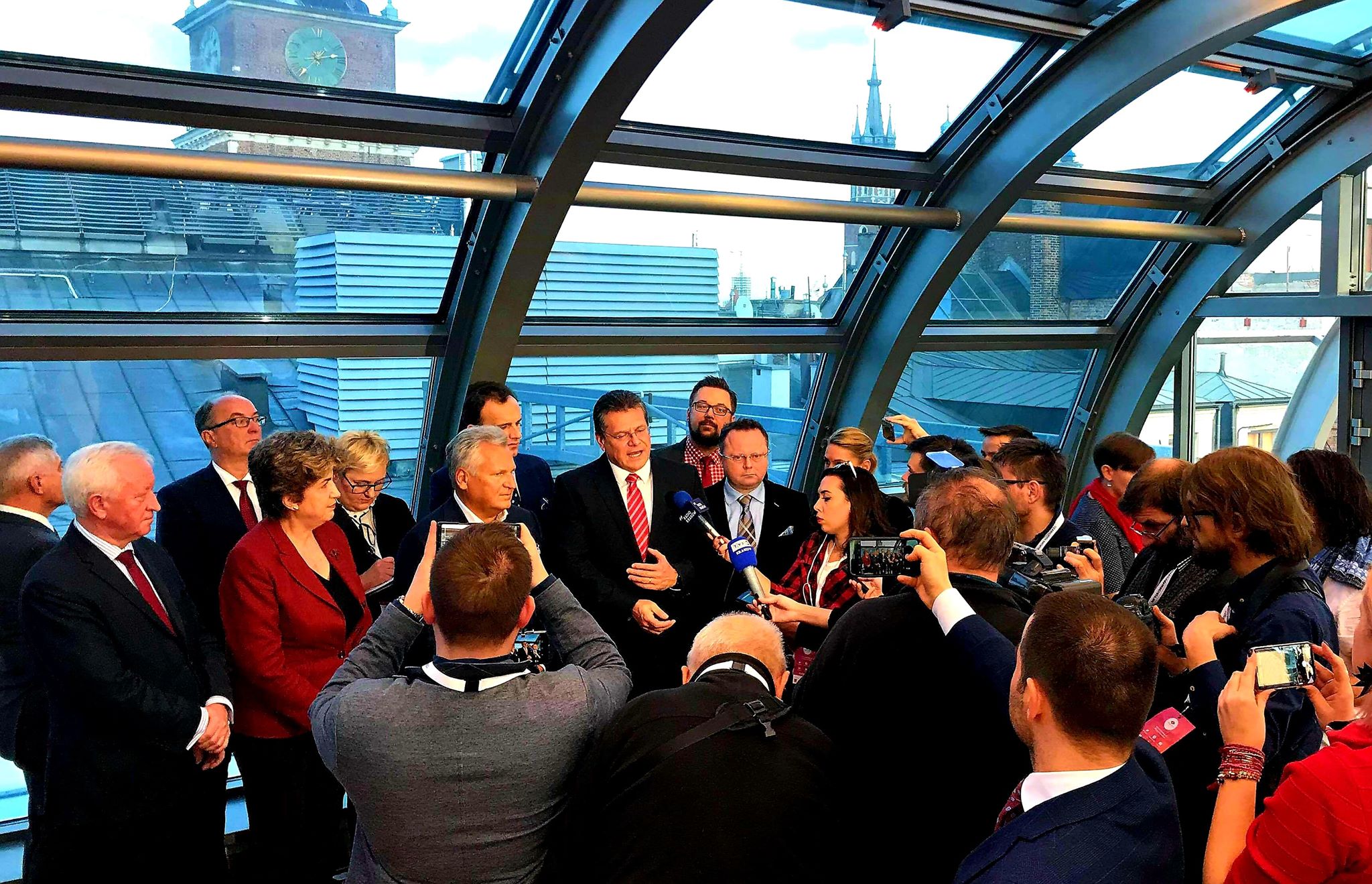 Wśród zaproszonych liderów politycznych znalazł się komisarz ds. energetyki Marosz Szefczovicz – Dziękuję za zaproszenie, dziś jest to dla mnie intensywny dzień. O poranku byłem w Katowicach gdzie z regionalnymi liderami rozmawiałem o tzw. regionach węglowych w okresie przejściowym. Rozmowy te mają na celu stworzenie nowych inwestycji, szczególnie na Śląsku gdzie wiele osób wciąż jest zatrudnionych w branży węglowej. Mówimy tu o nawet 100 000 pracowników.
