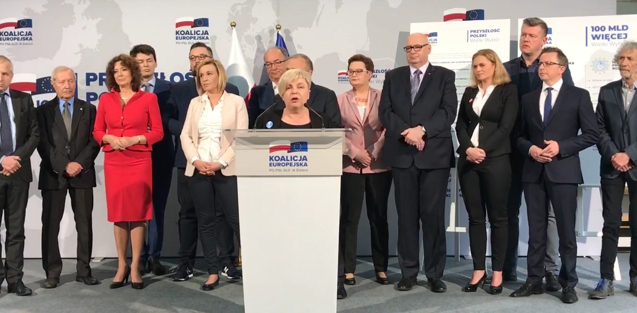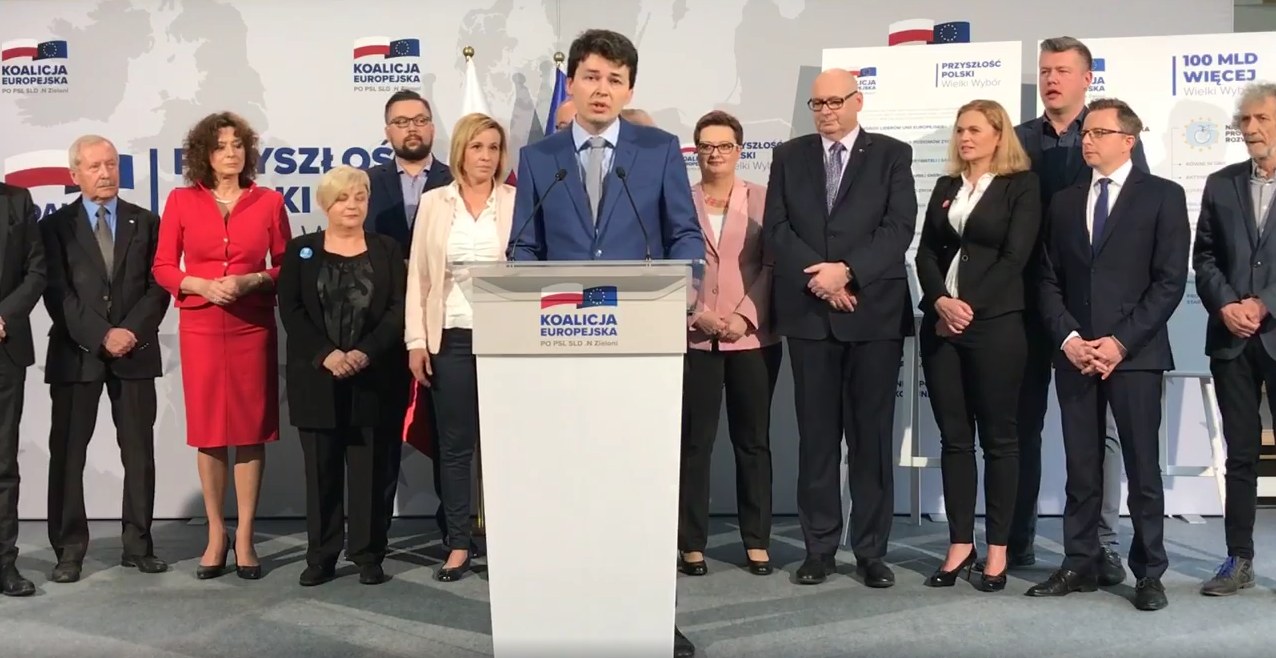 Podczas specjalnej konferencji prasowej ogłoszono, iż do KE – tworzonej dotychczas przez pięć ugrupowań: SLD, PO, PSL, Nowoczesna i Zieloni – dołączą nowe ugrupowania i ruchy. Inicjatywa Polska, Unia Europejskich Demokratów, Inicjatywa Feministyczna, Komitet Obrony Demokracji, Wolność i Równość, Wolne Sądy, SDPL we wtorek 19 maja oficjalnie przystąpiły do Koalicji Europejskiej.
