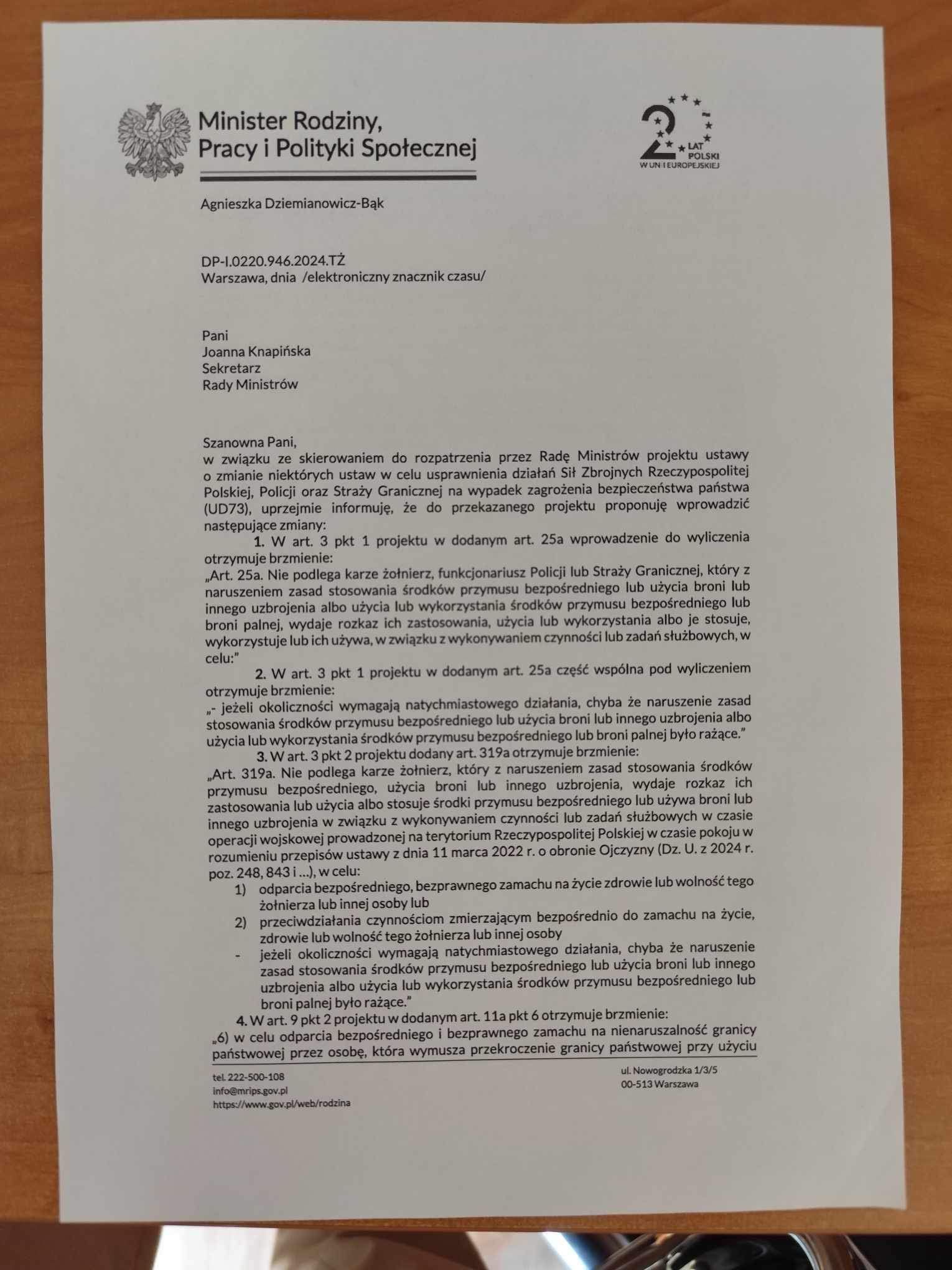 – Od momentu ujrzenia tego projektu budził on nasze głębokie obawy dotyczące przestrzegania podstawowych praw człowieka. Wojsko strzelające bezkarnie do cywilów? Nie chcemy tego – poinformowała Anna-Maria Żukowska, przewodnicząca KP Lewica.