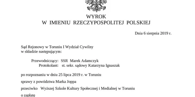 Marek Jopp, działacz SLD wygrywa z uczelnią o. Tadeusza Rydzyka