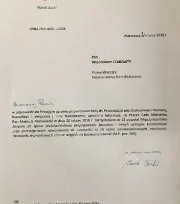 W związku z petycją SLD powołano Międzyresortowy Zespół do spraw przeciwdziałania propagowaniu faszyzmu i innych ustrojów totalitarnych oraz przestępstwom nawoływania do nienawiści na tle różnic narodowościowych, etnicznych, rasowych, wyznaniowych albo z
